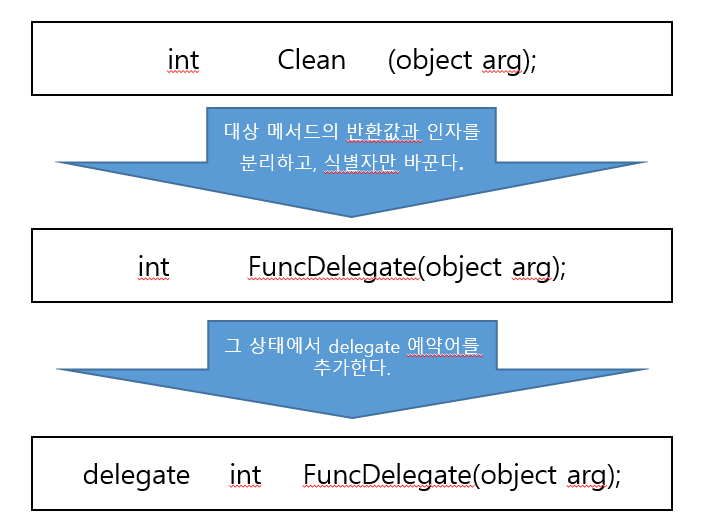 예를 들어 Clean 메서드에 대한 델리게이트 타입을 정의한다면